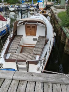 Baunummer 40 – Winnetou Baujahr: 1976 Besonderheiten: Bauwerft: Lehmann Umbau des Kiels mit Schwert auf reinen Bleikiel und Vertiefung des Kiels auf 1,60 m. Segelfläche: 37,85 m². Liegeplatz: Lübeck Verein: SVT Rigg: Alu, silber-eloxiert Motor: Fairymann R30 Diesel Ruderanlage: