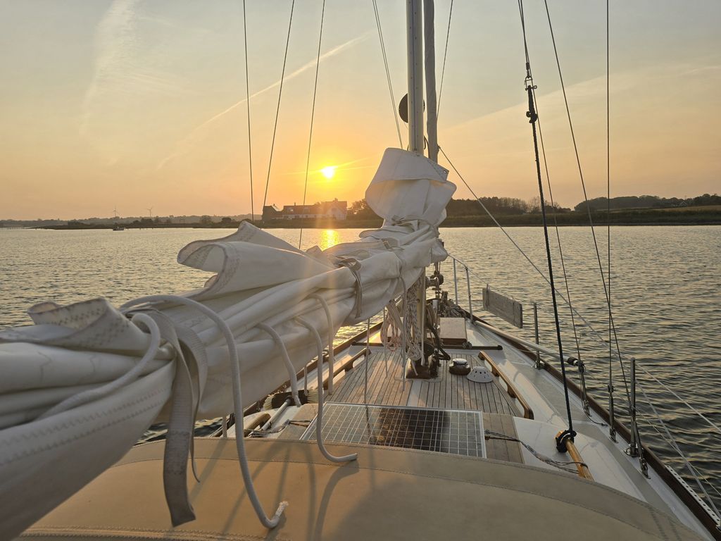 Am heutigen Freitag legen wir uns erstmal nur eine gute halbe SM südöstlich von Marina Minde, bei Iller Strand, vor Anker und genießen den Abend. Es ist ein schöner Ankerplatz, bei dem wir einen traumhaften Sonnenuntergang erleben. Einziger Wermutstropfen: Leider ist das Wasser voll mit kleinen Feuerquallen, so dass wir vom Schiff aus nicht ins Wasser gehen können.