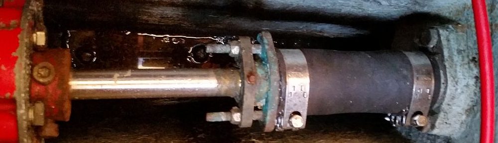 Wir haben, insbesondere in der letzten Saison, ein zunehmendes, rhythmisches Klopfen beim Betrieb unseres Yanmar 3GM30 wahrgenommen. Als das Schiff am Ende der Segelsaison in der Halle steht, stellen wir fest, dass die Welle recht viel Spiel im Sitz des Gummilager aufweist. Das gefällt uns einfach nicht. Außerdem gefällt uns das ständige Tropfen durch die Stopfbuchsdichtung überhaupt nicht - wir hätten gerne eine trockene Bilge!