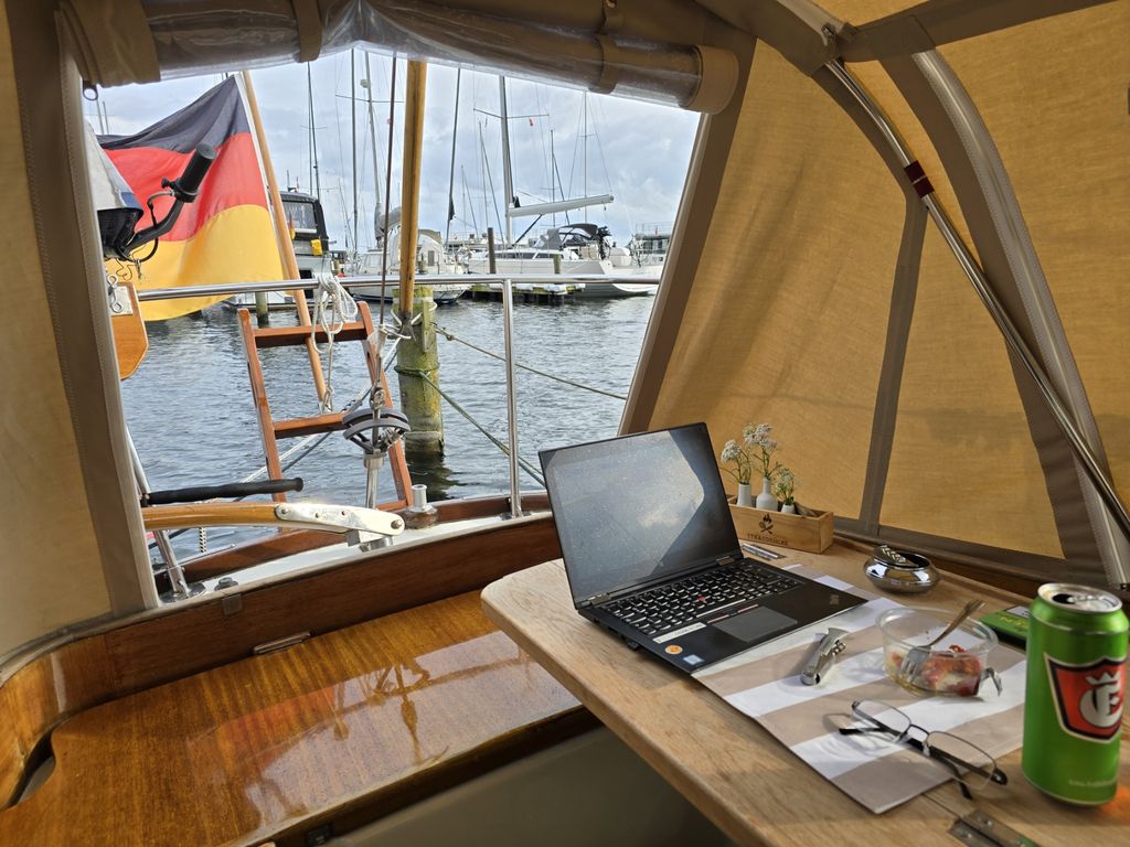 Laut Vorhersage für dieses Wochenende soll der Südwest-Wind eine Stärke bis 8 Beaufort erreichen. Bei dieser Windrichtung können die Böen entlang der Flensburger Förde ihre volle Energie entfalten. Es ist klar, dass wir bei solchen Bedingungen nicht den Hafen mit unserem Boot verlassen. Nicole und ich haben uns am heutigen Samstag Vormittag daher auf den Weg zu unserem Schiff gemacht, um mögliches Unheil abzuwenden.