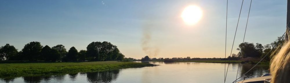 Nach einer Stunde kommen wir auf die Elbe und wir fahren der untergehenden Sonne entgegen. Die Fahrt in den Glückstädter Hafen dauert ziemlich genau zwei Stunden. Gegen 21Uhr machen wir im Hafen fest. Glücklicherweise haben wir noch unseren Polo von der Wochenendaktion dort stehen, so dass wir nicht mit der Bahn nach Hause fahren müssen.